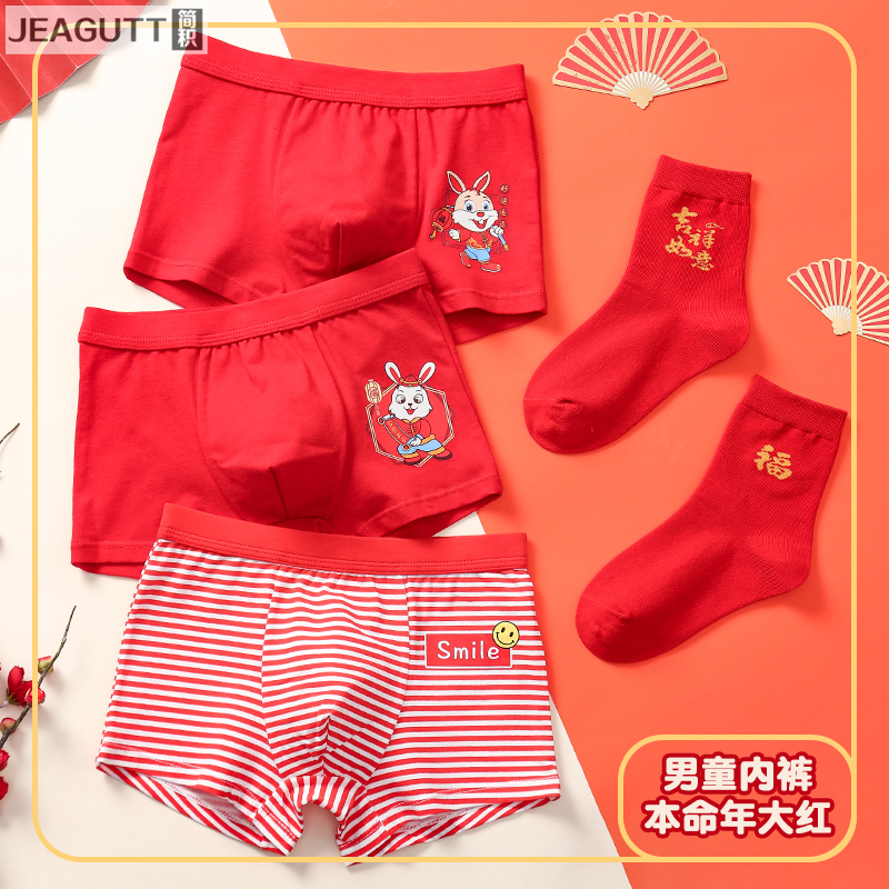 【产品名称:男童红内裤本命年平角四中大童13青少年男孩纯棉短裤属兔12岁儿童】