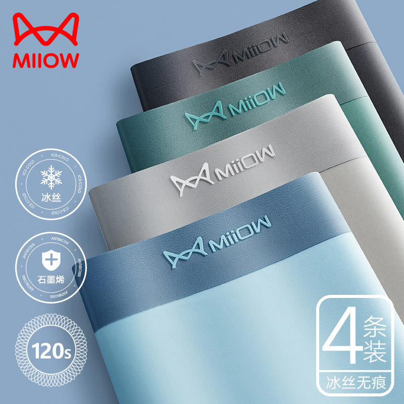 【产品名称:猫人男士内裤衩无痕冰丝薄款抗菌裆男生透气四角裤夏季平角短裤头】