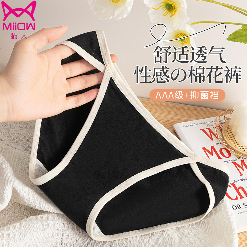 【产品名称:猫人纯棉女士三角裤纯欲暴击高开叉少女裤纯色简约甜美学生内裤头】