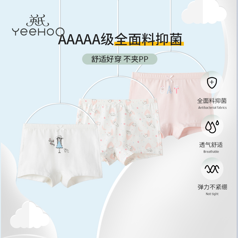 【产品名称:英氏男女童内裤四季款儿童四角抗菌中大卡通纯棉不夹pp底裤三条装】