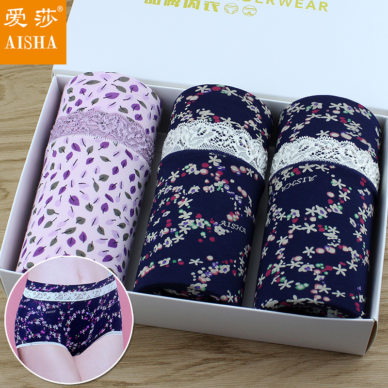 【产品名称:爱莎女士内裤中高腰包臀竹纤维弹力透气柔软性感印花小平角裤裤衩】