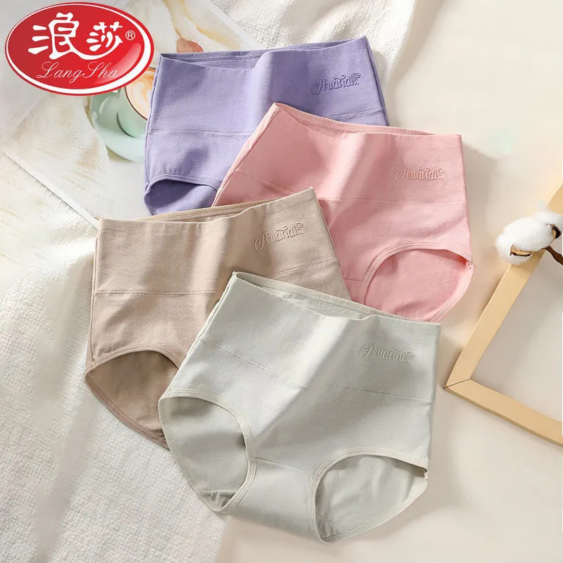 【产品名称:浪莎女士内裤女纯棉抗菌全棉裆透气女生大码高腰收腹提臀三角短裤】