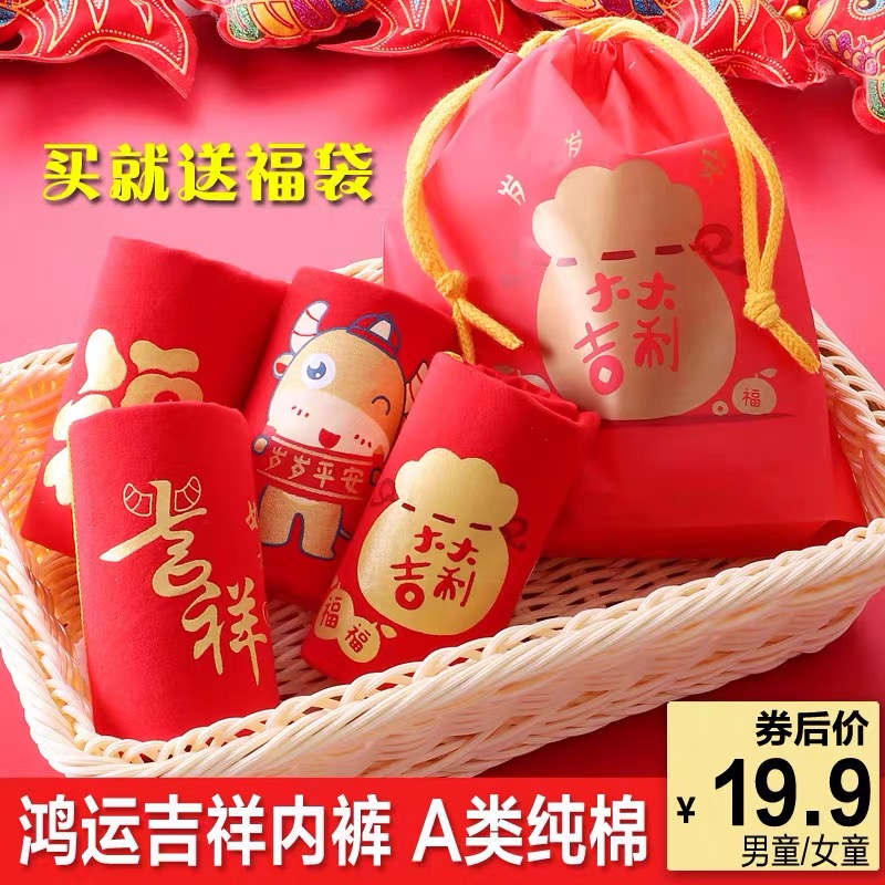 【产品名称:儿童红色内裤男童本命年纯棉短裤女童中大童12男孩13岁牛年平角裤】