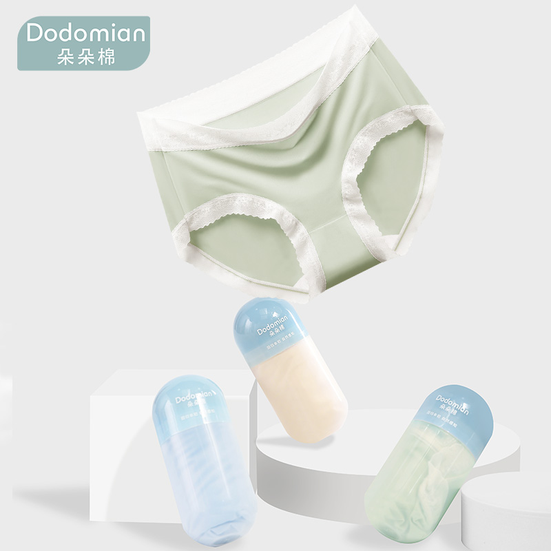 【产品名称:朵朵棉冰丝内裤女士夏季轻薄聚乳酸底裆透气性感蕾丝大码三角短裤】