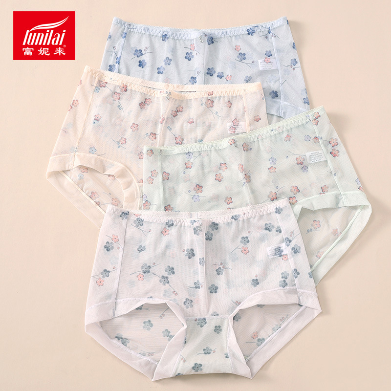 【产品名称:富妮来内裤女士短裤夏季薄款透气性感冰丝三角裤网纱无痕小平角裤】