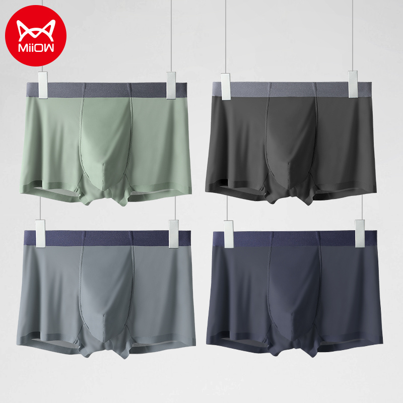 【产品名称:猫人冰丝内裤男士无痕夏季薄款四角裤头平角裤舒适透气潮流短裤衩】