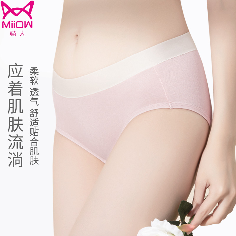 【产品名称:猫人女士高腰时尚收腹纯棉亲肤高腰亲肤透气少女日系大码三角内裤】