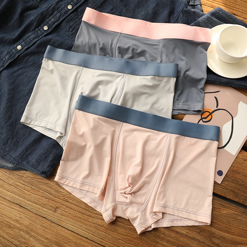 【产品名称:3条装画内原创纯色内裤男薄款冰丝商务简约风男士夏季平角四角裤】