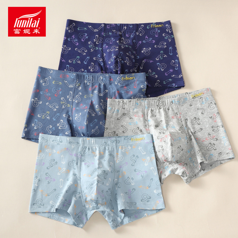 【产品名称:富妮来内裤男士夏季薄款透气莫代尔平角裤加肥加大宽松中腰四角裤】