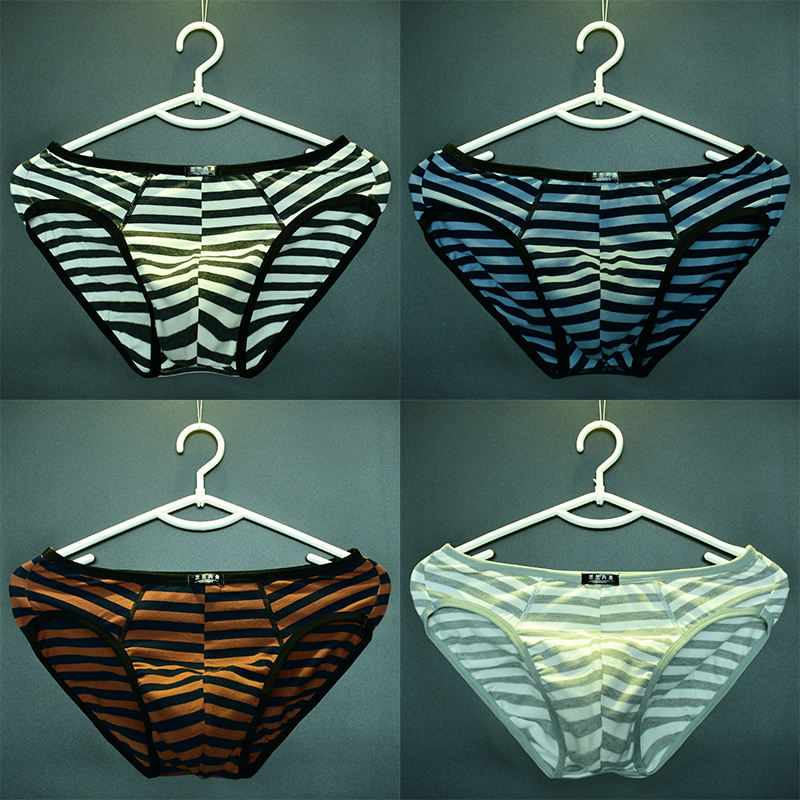 【产品名称:4条男士中腰三角全棉内裤纯棉细边运动条纹透气吸汗舒适弹力棉裤】