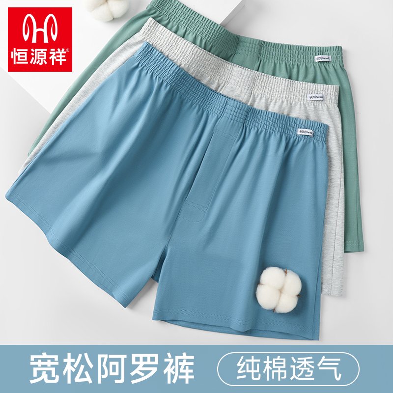 【产品名称:恒源祥宽松男士内裤纯棉平四角裤衩大码透气舒适夏季男生全棉短裤】