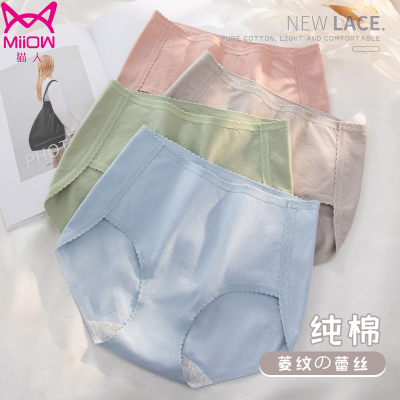 【产品名称:猫人无痕内裤女士中腰纯棉抗菌全棉夏季薄款透气少女生新款内裤头】