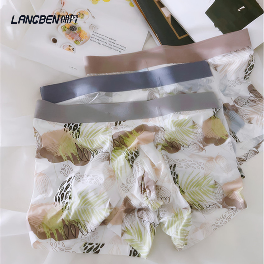 【产品名称:朗奔无痕冰丝内裤男士性感抑菌艾草裆轻薄透气平角裤潮男生短裤头】