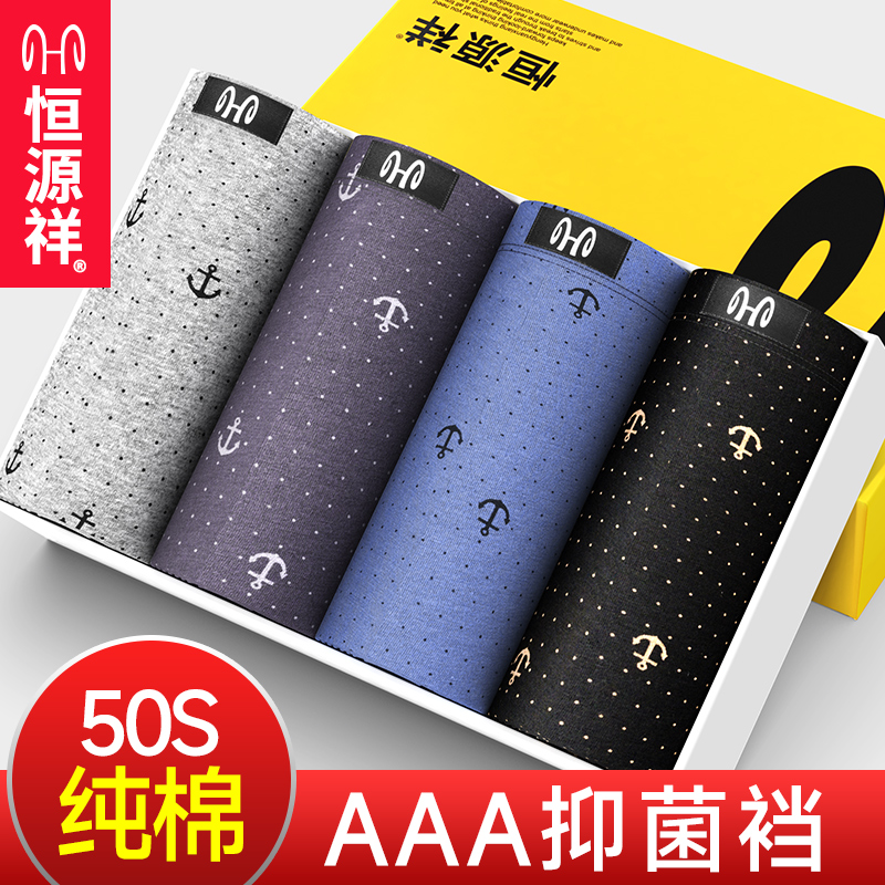 【产品名称:恒源祥男士内裤男生裤衩子底裤纯棉男款内短裤四角平角裤头春夏季】