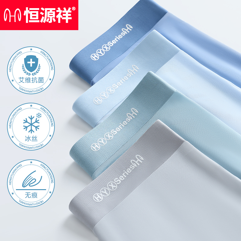 【产品名称:恒源祥男士四角冰丝内裤夏季大码无痕透气短裤男抗菌平角裤头男款】