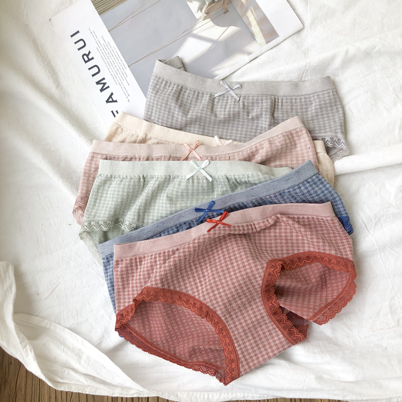【产品名称:超弹莫代尔无痕内裤女士蕾丝边春秋季大弹力中腰纯棉裆三角裤女生】