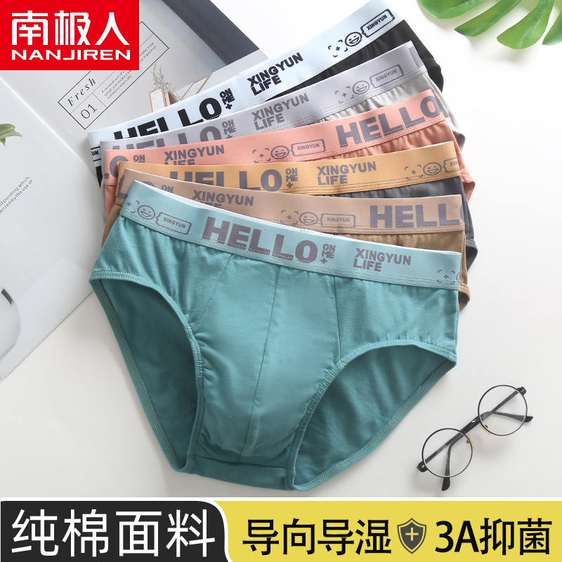【产品名称:南极人三角内裤男士纯棉透气裤头青年中腰舒适宽松夏季男生短裤衩】