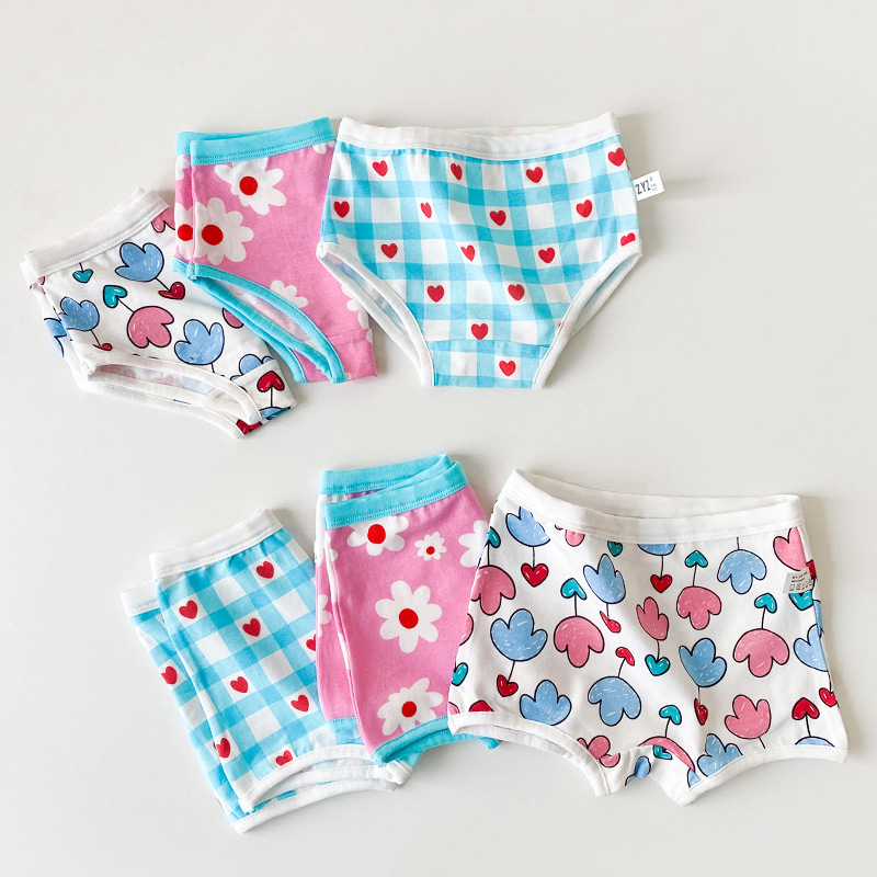 【产品名称:女童纯棉内裤三角平角潮款爱心格子插画花朵不夹PP小女孩可爱短裤】