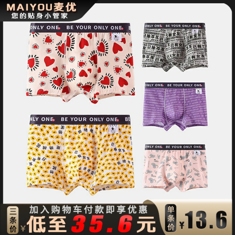 【产品名称:男士内裤男个性印花潮流卡通可爱纯棉透气纯棉抑菌内裆四角裤包邮】