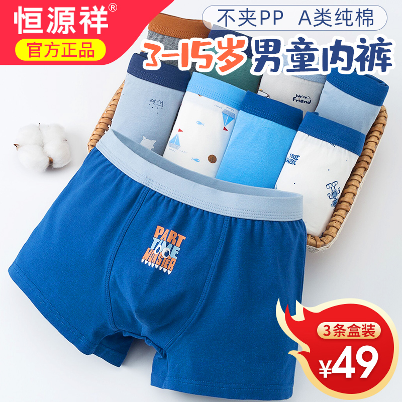 恒源祥男童内裤平角纯棉儿童短裤全棉男孩100%棉10-12-15岁中大童