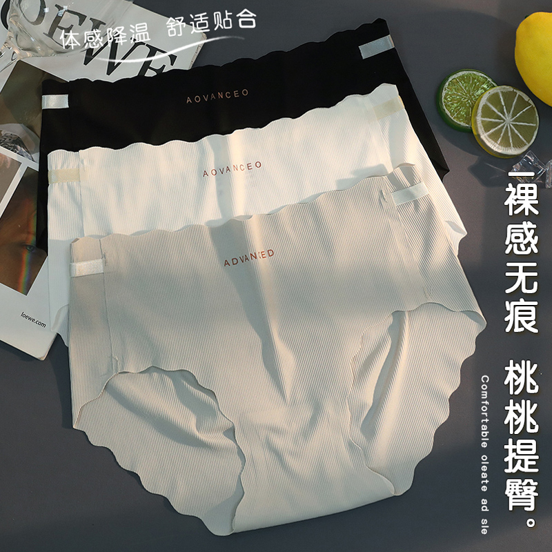【产品名称:冰丝内裤女士无痕中腰夏季薄款少女风纯棉全棉裆透气提臀三角短裤】