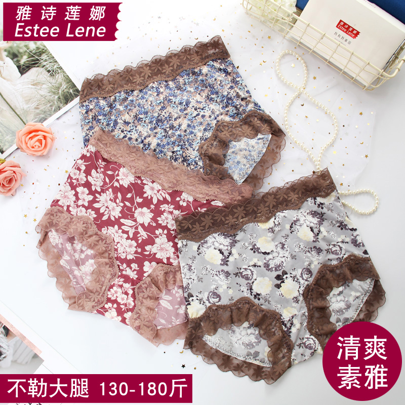 【产品名称:碎花性感高腰大码蚕丝莫代尔棉无痕女士内裤春薄款蕾丝胖mm200斤】