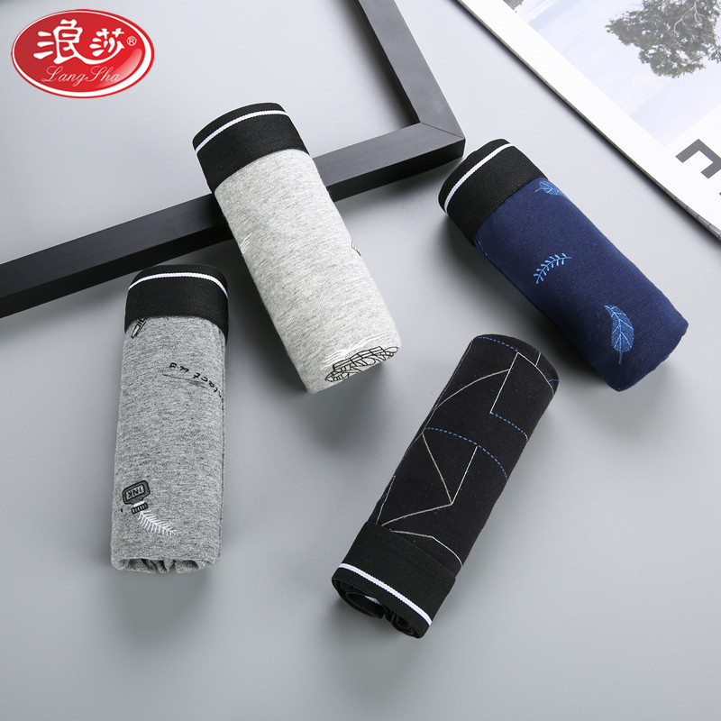 【产品名称:浪莎内裤男士纯棉中腰平角裤衩弹力棉个性潮流简约印花短裤头4条】
