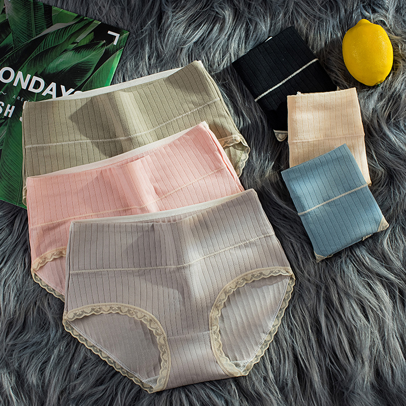 【产品名称:高腰内裤女纯棉少女抗菌蕾丝性感舒适简约大码提臀收腹女士三角裤】