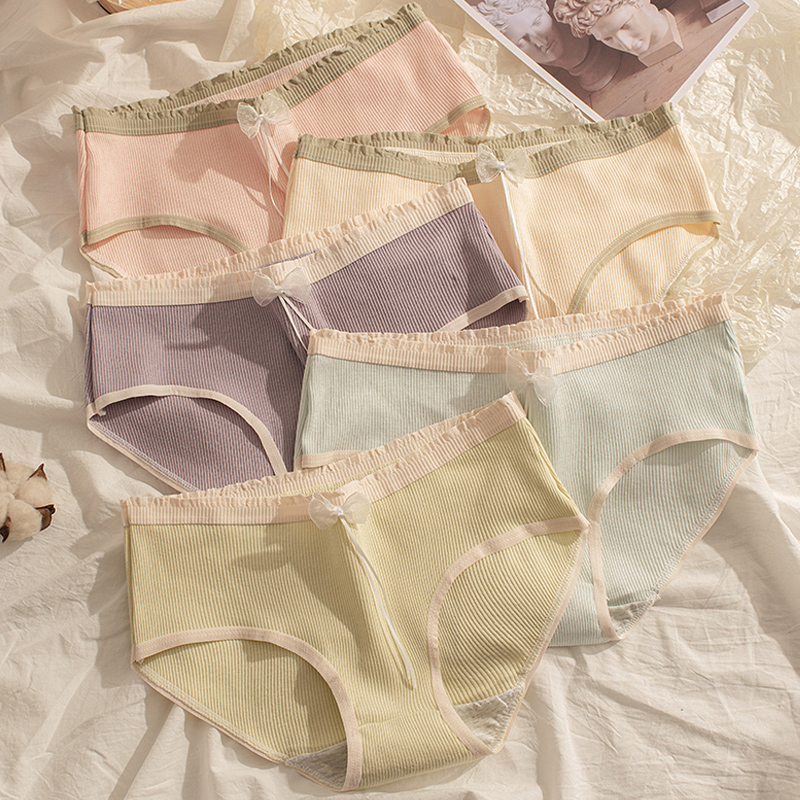 【产品名称:内裤女士纯棉性感少女生日系新款蝴蝶结100%全棉裆女式三角裤短裤】