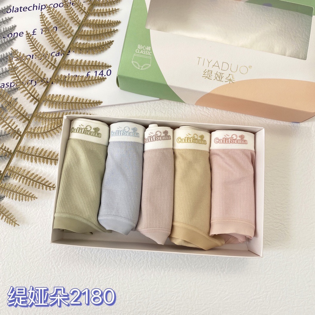 【产品名称:缇娅朵正品5条盒装中腰女士莫代尔螺纹抗菌蚕丝棉裆小平角内裤头】
