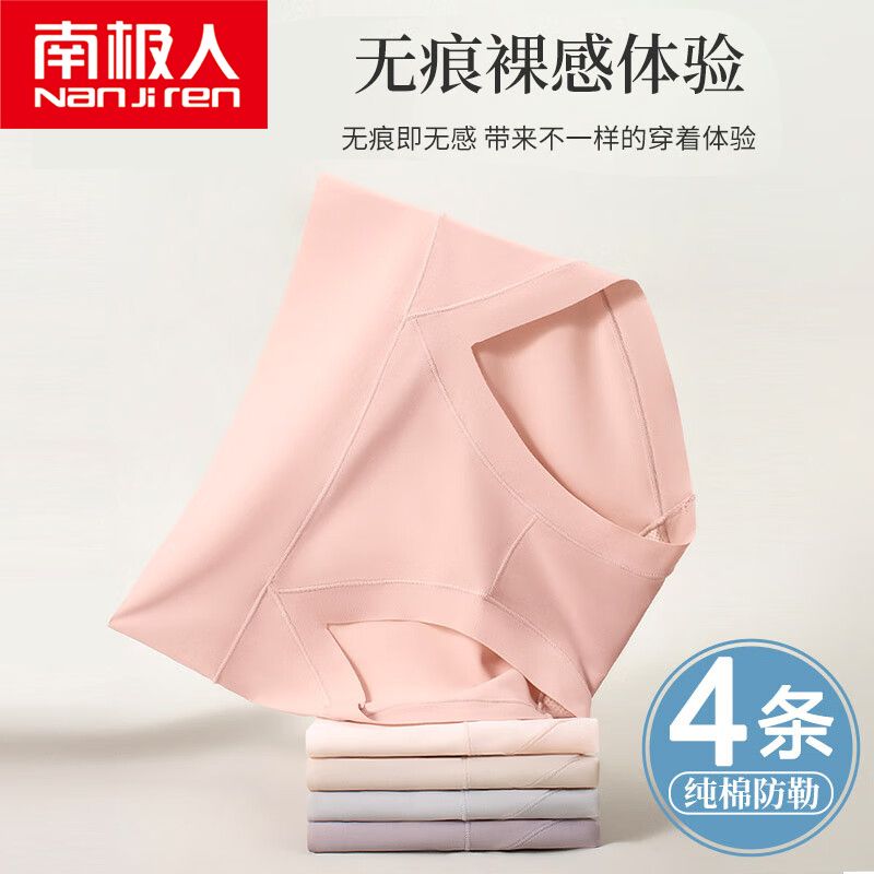 【产品名称:南极人无痕冰丝内裤女士不夹臀瑜伽健身运动专用不卷边三角短裤头】