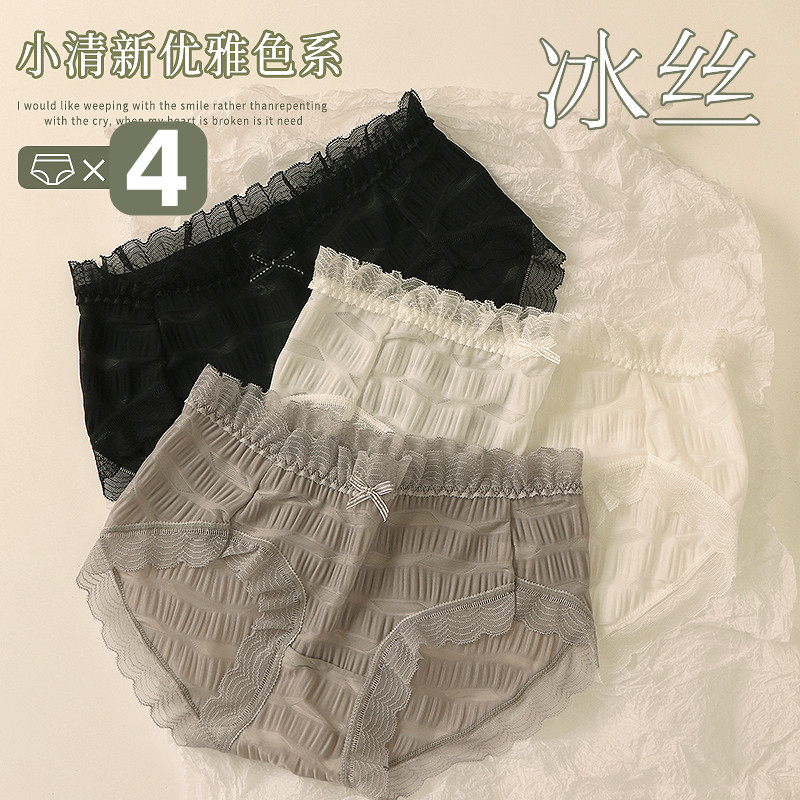 【产品名称:冰丝内裤女士蕾丝夏季薄款纯棉裆抗菌少女生学生性感纯欲三角短裤】