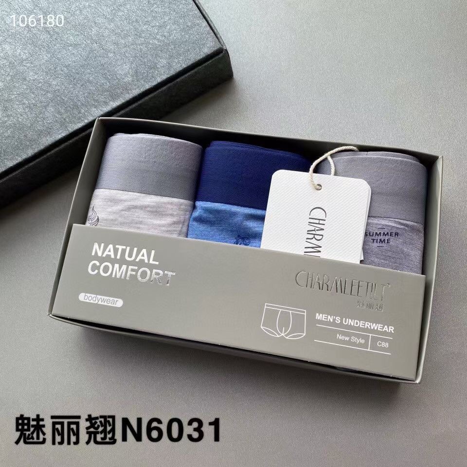 【产品名称:魅丽翘精品3条盒装N6031男士60支莫代尔棉舒适无痕透气平角内裤头】