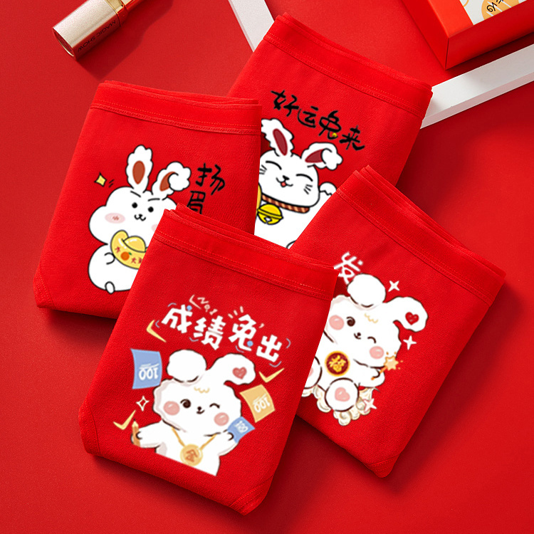 【产品名称:女童2023兔年本命年红色内裤短裤头全棉健康抗菌12岁裤衩儿童套装】