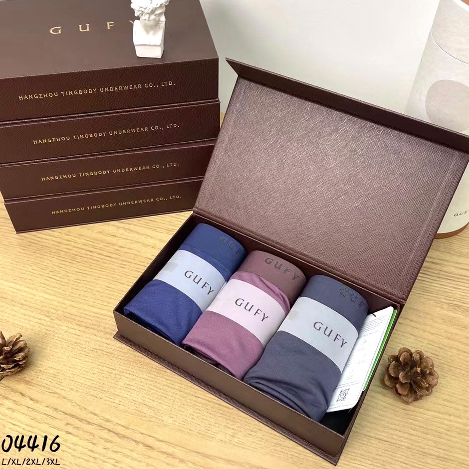 【产品名称:古妃正品3条盒装无痕莫代尔男士平角内裤艾草抗菌透气四角短裤头】