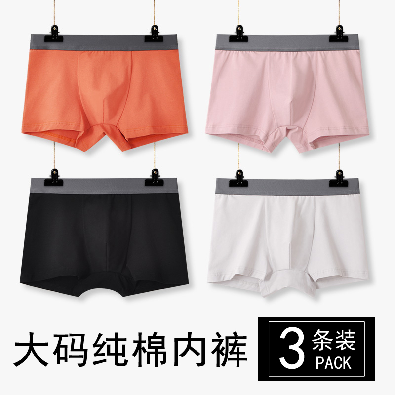 【产品名称:大码内裤男士200斤中腰透气纯棉加肥加大舒适青年学生运动平角裤】