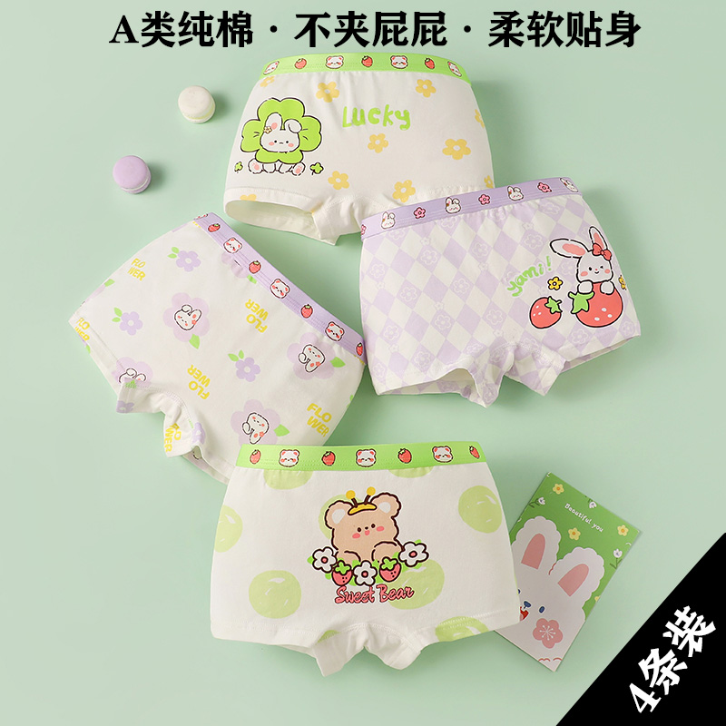 【产品名称:胖女童平角内裤中大童加肥加大三角短裤胖女孩大码宽松三条装纯棉】