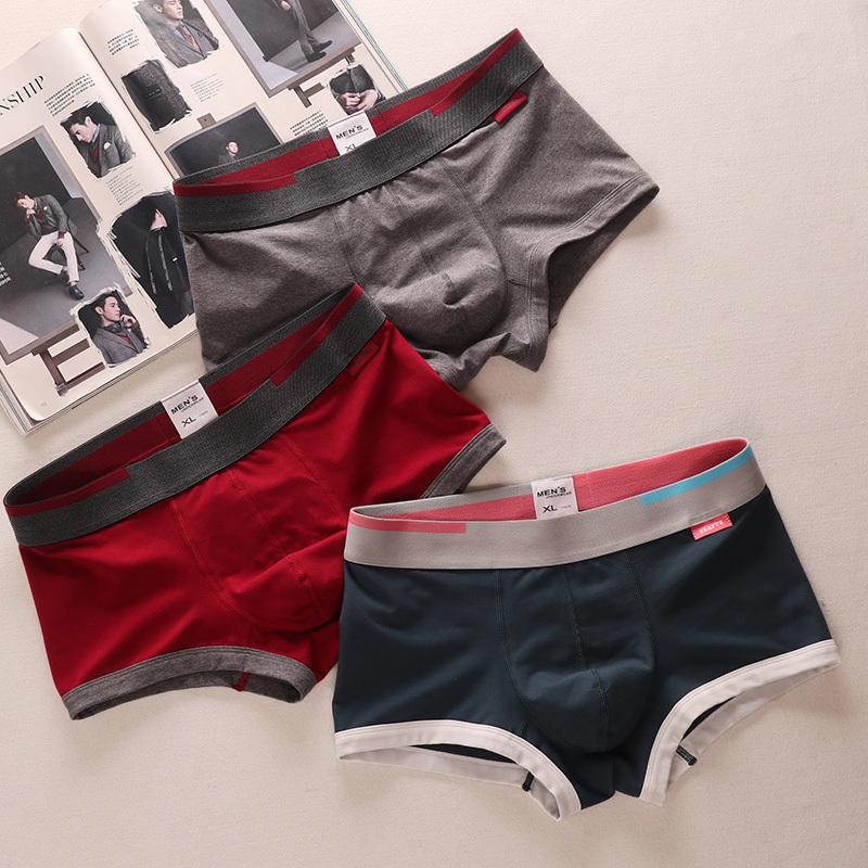 【产品名称:3条 简约优雅中腰舒适纯棉潮男士内裤全棉透气修身四角裤头底裤衩】