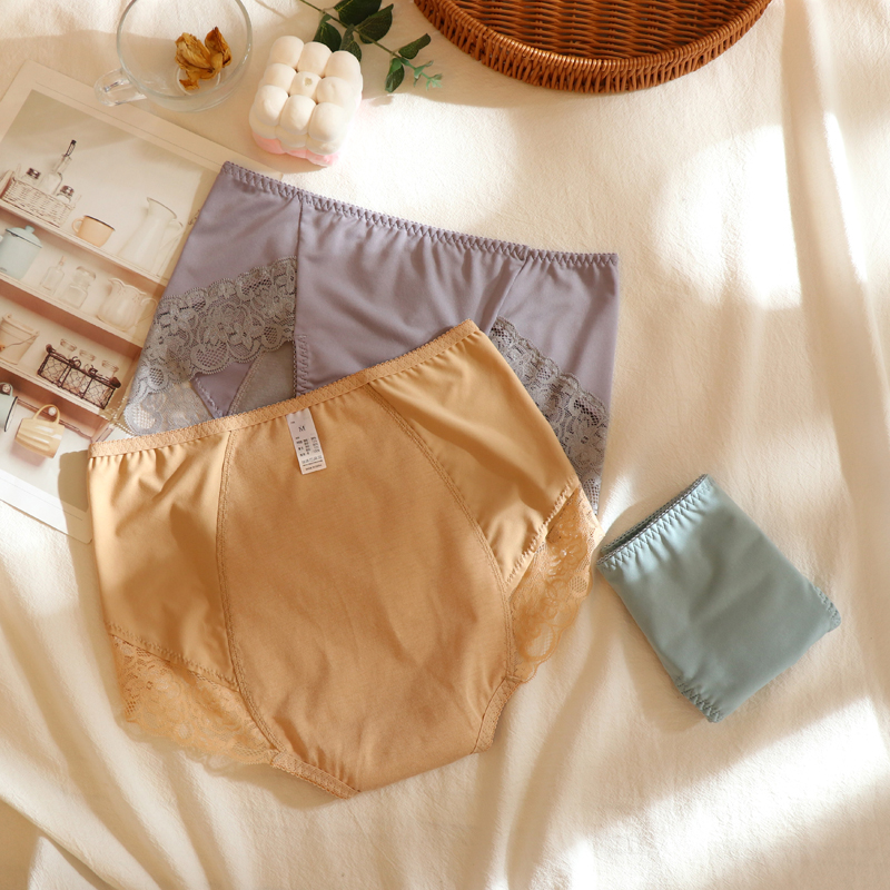 【产品名称:大码生理内裤女士月经期防漏牛奶丝蕾丝胖mm200斤姨妈裤夏季薄款】