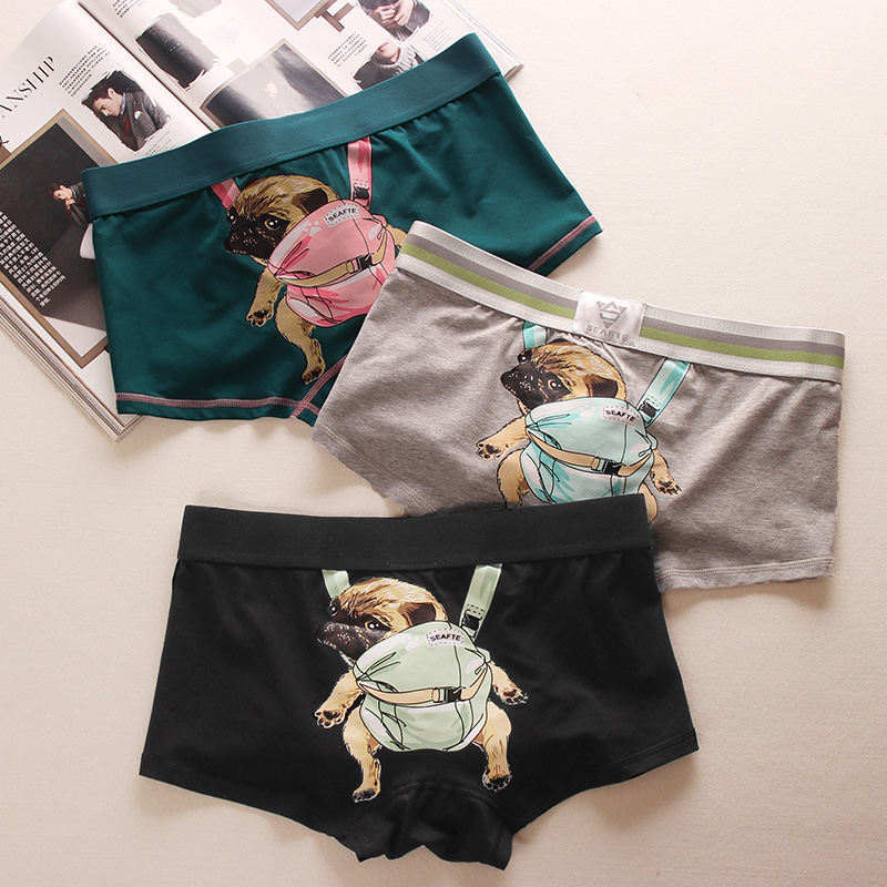 【产品名称:3条 旅行的狗狗男士内裤日系动漫纯棉大囊袋底裤头文艺青年四角裤】