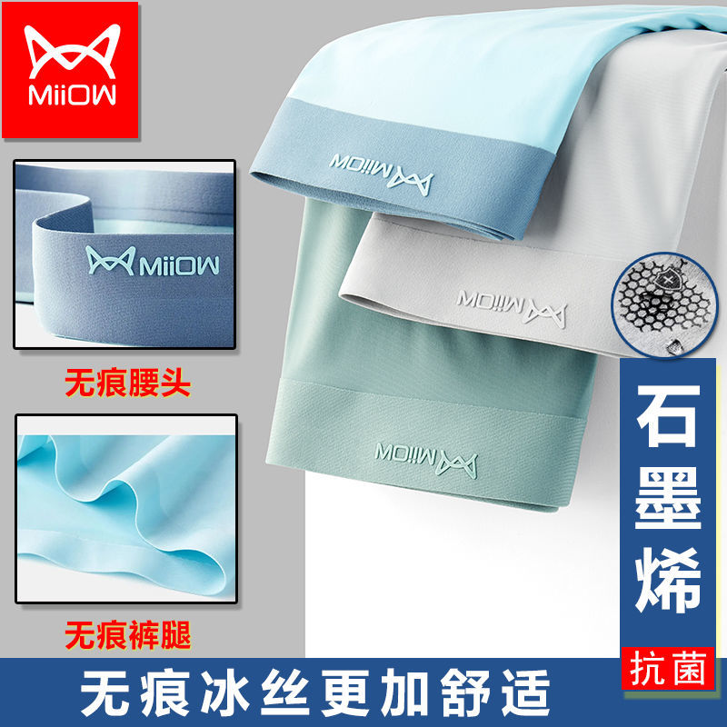 【产品名称:猫人抗菌裆男士内裤男冰丝无痕四角裤运动纯棉裆平角大码裤青少年】