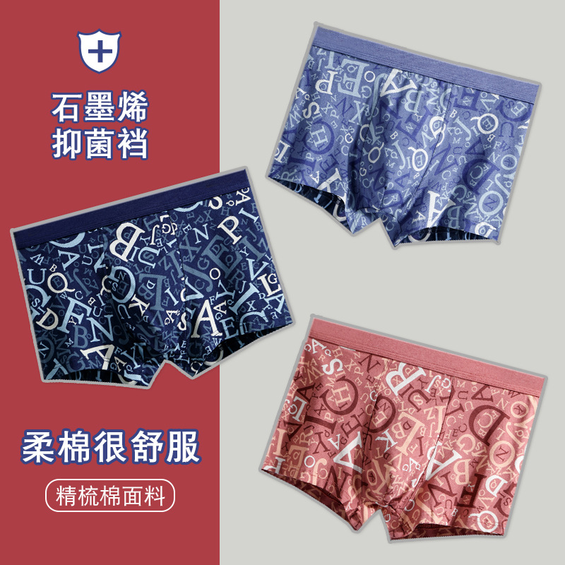 中腰印花四角内裤厂家批发新品纯棉男士内裤男士纯棉U凸平角裤