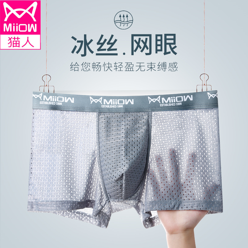 【产品名称:猫人男士内裤男冰丝网孔石墨烯3A级抗菌裆平角裤夏季透气舒适四角】