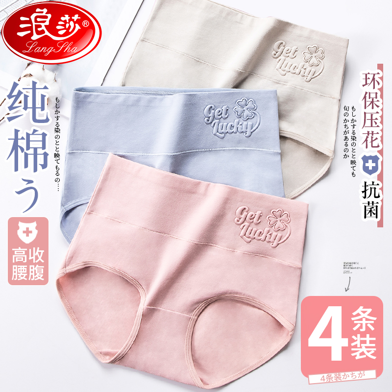 【产品名称:浪莎女士内裤女全棉纯棉裆薄款透气抗菌产后塑身收腹胖mm高腰三角】