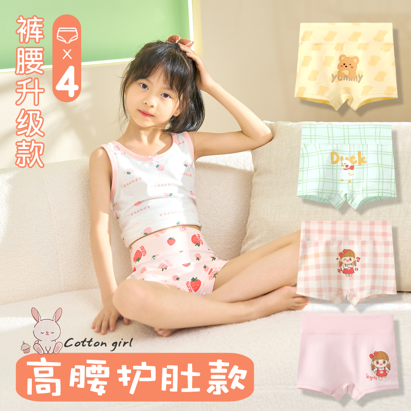 【产品名称:儿童内裤女童纯棉高腰平角小女四角短裤中大童女宝宝100%不夹pp】