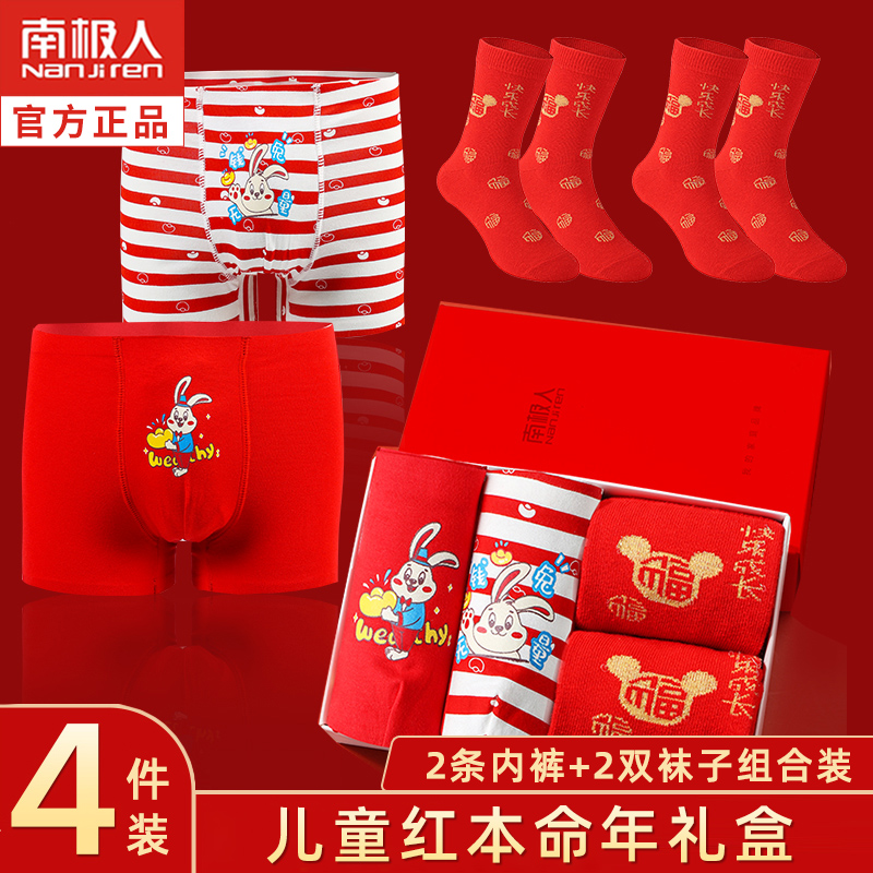 【产品名称:男童女童本命年内裤12岁兔年纯棉平角13儿童大红袜子女孩三角短裤】