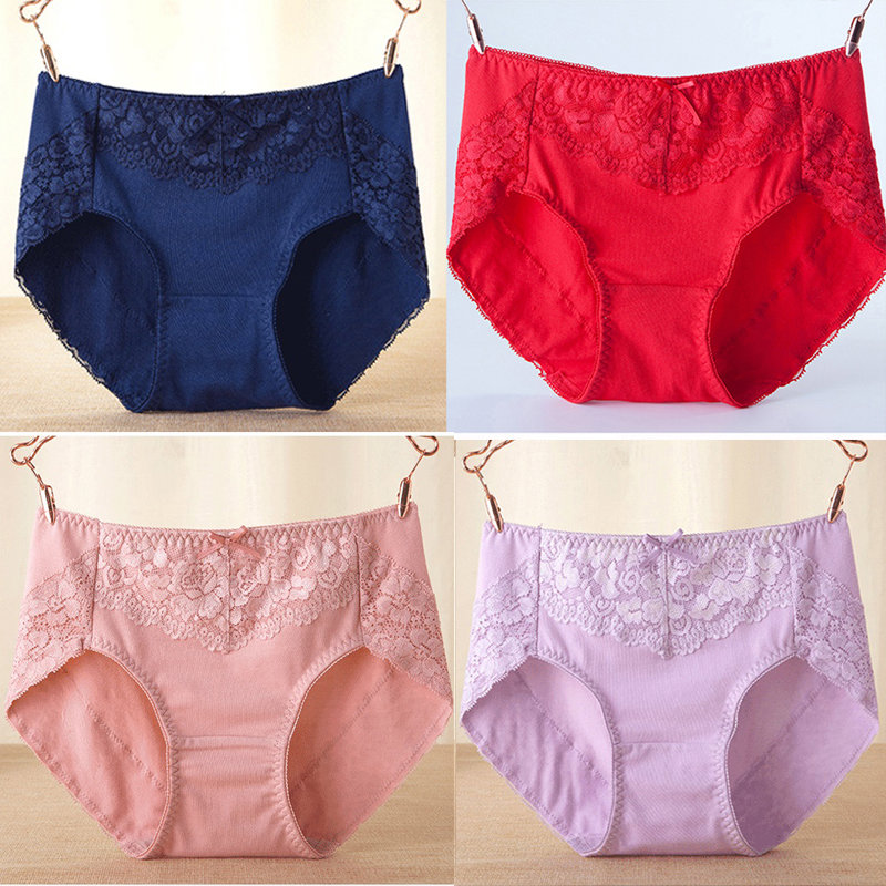 【产品名称:4条日系性感蕾丝内裤女中腰纯棉全棉女士大码三角裤无痕胖mm】