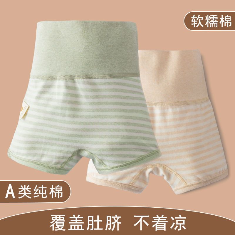 【产品名称:儿童高腰护肚内裤女平角全棉男童护肚脐裤子不夹屁屁四脚彩棉短裤】