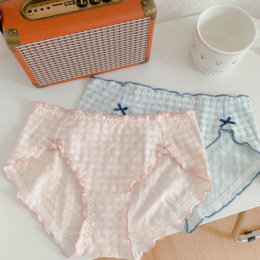 【产品名称:大码华夫格内裤女士春夏亲肤中腰无痕透气日系少女胖MM女生三角裤】