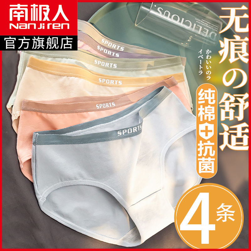 【产品名称:南极人女士内裤中腰纯棉大人抗菌无痕学生韩版少女大码三角短裤头】